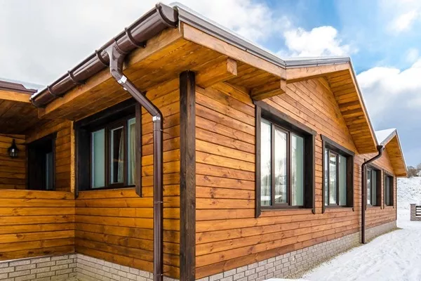Отделка дома имитацией бруса имеет ряд плюсов, обусловленных характеристиками пиломатериала, который применяют в процессе; это: