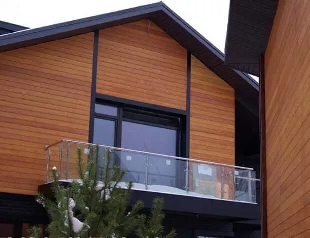 Имитацией бруса называют вагонку со скошенными лицевыми гранями. Образуемый трапециевидный профиль создает визуальный эффект кладки из профилированного бруса. При этом он может быть выполнен действительно из древесины или быть в полном смысле ее имитацией. В первом случае для изготовления используется цельный кусок дерева, во втором — опилки.