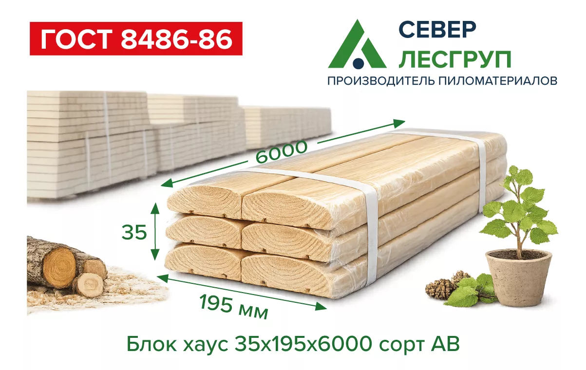 Блок-хаус 35x195x6000 сорт AB. Широкий массивный профиль с выразительной имитацией бревна для фасадной и внутренней отделки.