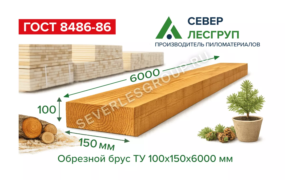 Обрезной брус ТУ 100x150x6000 и 90x140x6000, хвойные породы, естественная влажность. Универсальное сечение для лаг, перекрытий и силовых элементов каркаса, когда важны прочность, геометрия и удобство монтажа.