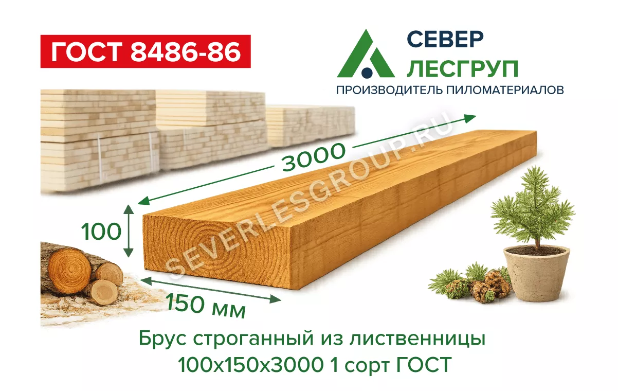 Строганый брус из лиственницы 100x150x3000, 1 сорт ГОСТ. Усиленное сечение из плотной древесины для стоек, обвязки и силовых элементов каркасных конструкций.