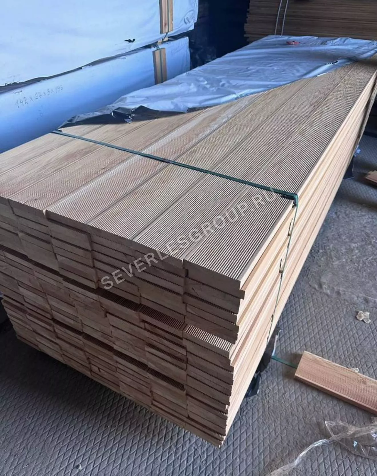 После материал отправляется на склад, где хранится при оптимальной температуре и влажности для сохранения формы, внешнего вида и исходных свойств. Террасная доска из лиственницы 35x140х3000 cорт Прима всегда в наличии, поскольку запасы постоянно пополняются. Поэтому заказать можно любой объем, и мы быстро отправим его собственным транспортом по Москве и Московской области. Чем больше покупаете — тем больше экономите. У нас гибкая система скидок, отлаженная логистика и большой перечень дополнительных услуг.
